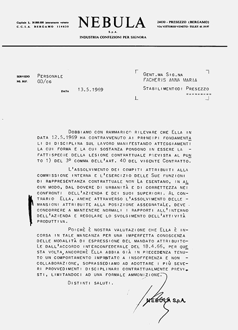 Il ’69 operaio, tuttavia, rappresenta il momento in cui il sindacato, e in particolare la Fiom di Bergamo, procede a un riassetto della propria struttura interna. L’ingresso in fabbrica di una nuova generazione di lavoratori mette in discussione lo status quo, esprime una critica radicale al verticismo dell’organizzazione sindacale e, dunque, allo statuto delle Commissioni interne, a cui – poco a poco – si sostituiscono Comitati di lotta spontanei e, successivamente, i Consigli di fabbrica.