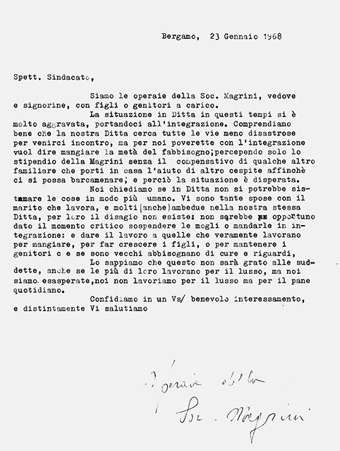 Il ’69 è dunque l’avvio di una riscossa dei lavoratori, capaci infine di leggere e interpretare le situazioni del lavoro all’interno della fabbrica intesa nella sua complessità, tanto da poter intervenire in ogni ambito della vita dell’impresa, inclusa – paradossalmente – la gestione del cibo in mensa, come nel 1973 alla Magrini, quando viene chiesta – con un lessico sindacale ormai radicato – l’abolizione delle polpette, piatto a cui si attribuivano frequenti malesseri.