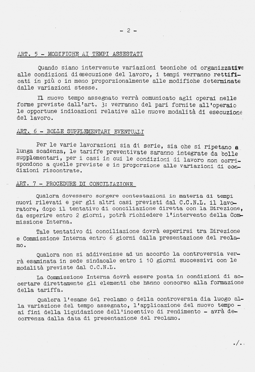 Vertenze aziendali annuali si aprono per mensa, aumenti salariali, pause. Una su tutte: la vertenza per il cottimo. Dalle parole di Umberto Duina: “Abbiamo ottenuto tutto! Ma sul cottimo Pasotti non voleva mollare”.