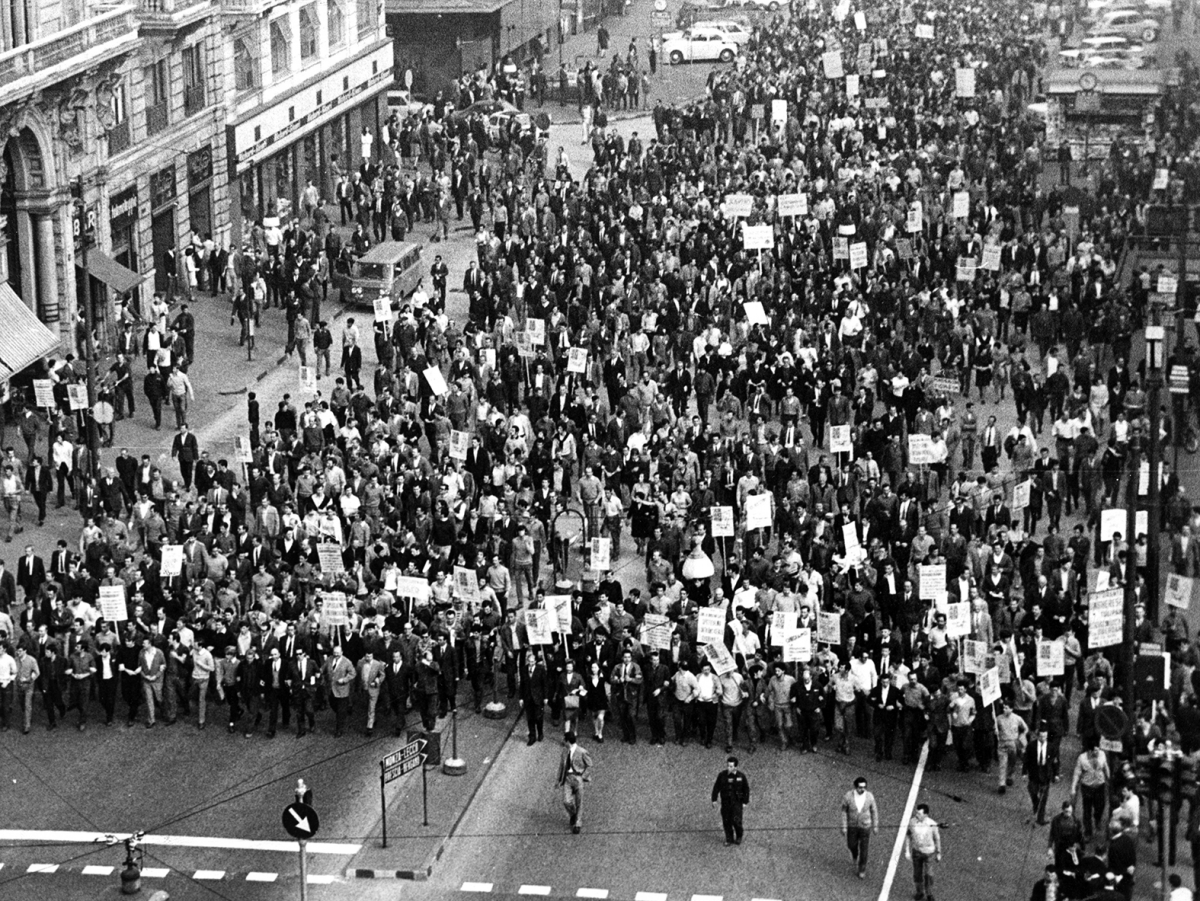 Le agitazioni dei lavoratori e quelle degli studenti coinvolgono tutta la città.
