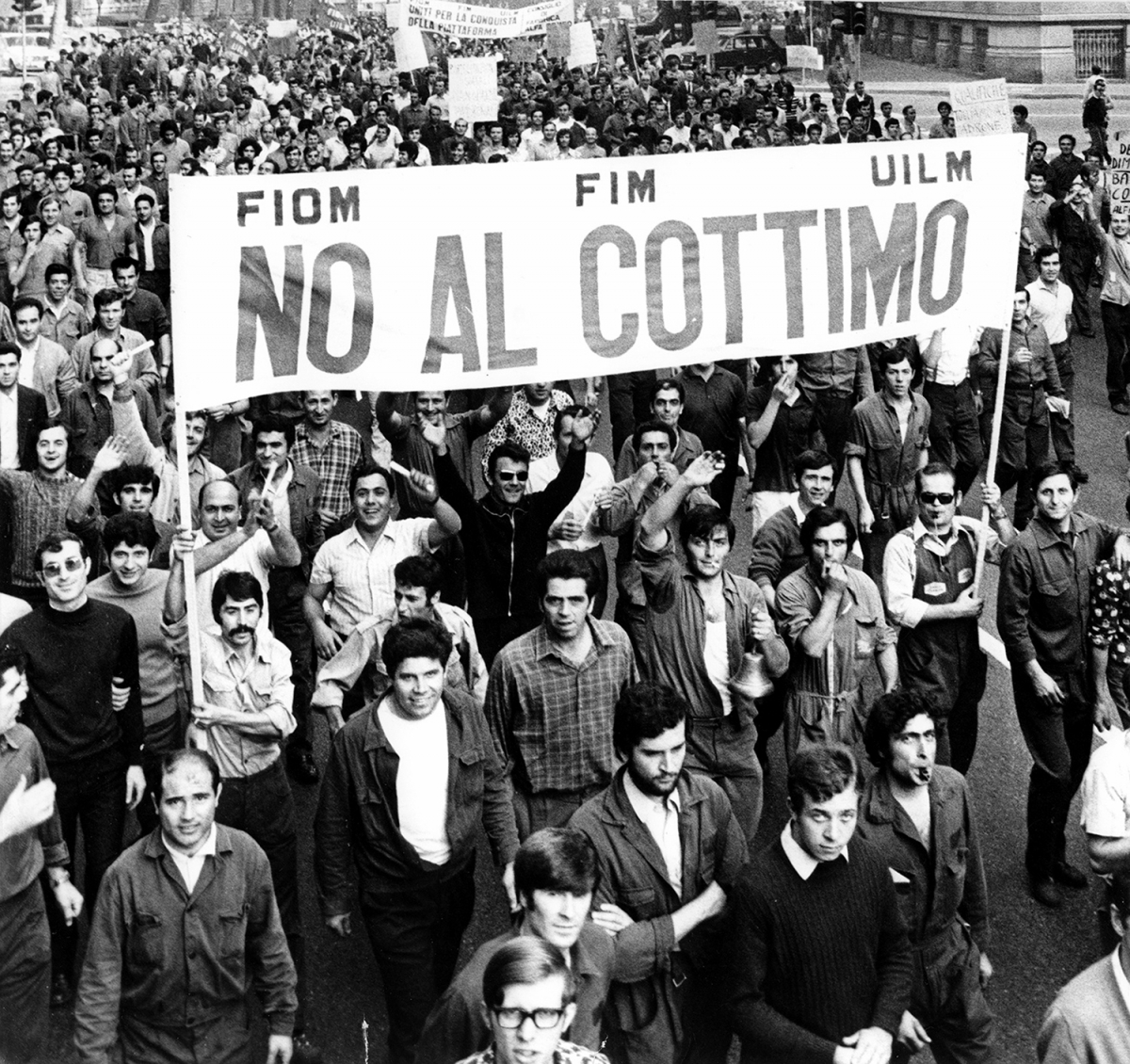 Il cottimo è collegato al rendimento dei lavoratori. Il lavoratore viene remunerato in base ai “pezzi” prodotti, anziché in base alla durata del lavoro, di conseguenza il salario dipende e varia in base alla produttività. In fabbrica gli operai e le operaie che “imprimono il tempo” sono soprannominati “i muli” e il loro tempo diventa il parametro per tutti gli altri. Prima del 1969 la contrattazione sindacale era improntata a monetizzare, ovvero a trasformare in guadagno economico lo sforzo crescente del lavoratore; in seguito assume un’importanza maggiore la tutela della salute, e diventa centrale la richiesta di una diminuzione della fatica fino all’abolizione del cottimo.